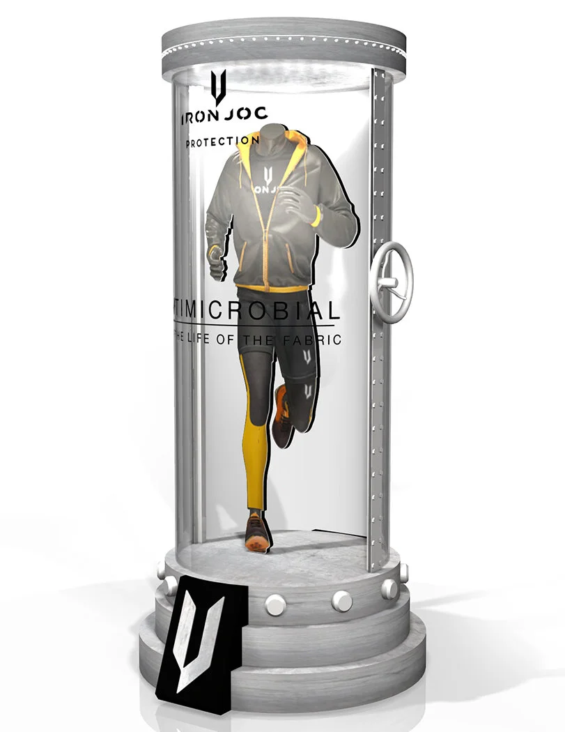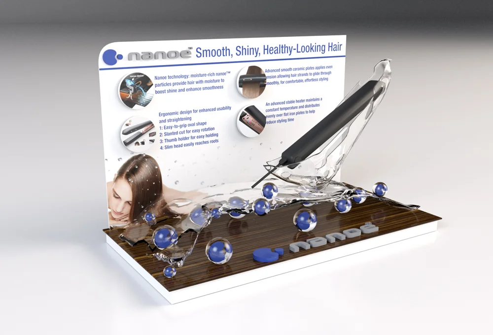 Emphasizing the brand essence with hammered metal and distressed wood with a clear acrylic case
